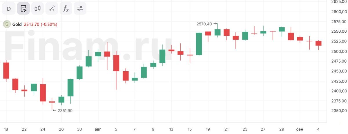 К 12:53 мск стоимость декабрьских фьючерсов на золото опускается на 0,5%, пребывая на уровне $2513,7 за тройскую унцию.