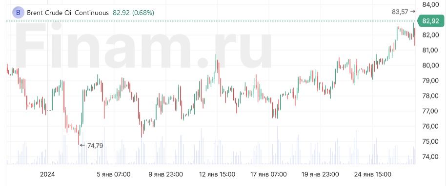 Стоимость нефти Brent поднялась выше 83 долларов за баррель впервые с конца ноября прошлого года, свидетельствуют данные торгов.