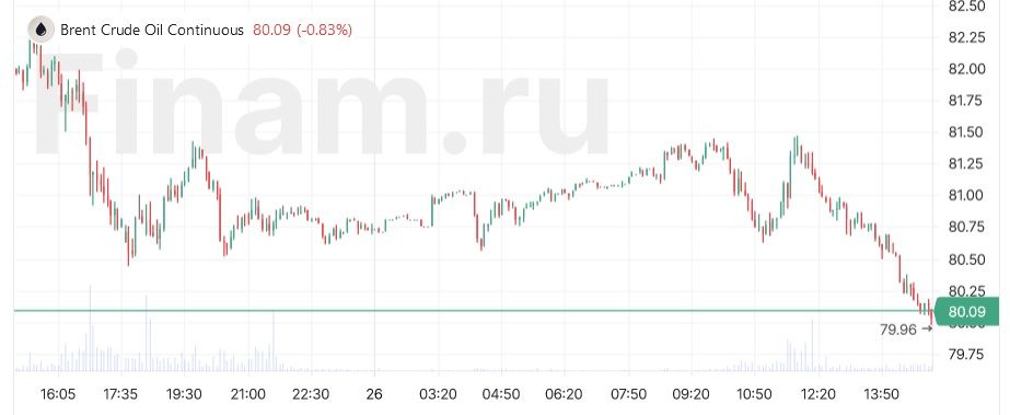 К 15:09 мск ее стоимость опускалась на 0,83%, до 80,09 доллара за баррель, а немногим ранее побывала на отметке 79,96. WTI дешевеет на 0,93%, до 76,74 доллара.